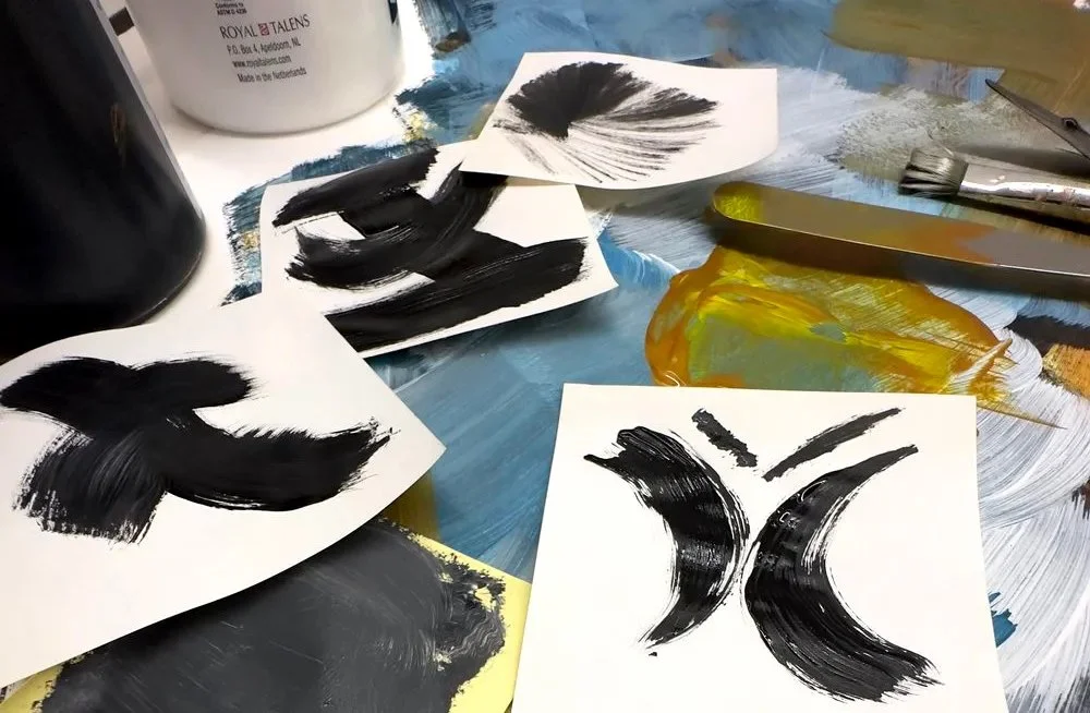Spesso faccio con un pennarello nero dei segni su dei piccoli foglietti bianchi che raccolgo (ne avrò a migliaia) per provare nuove forme, nuove sovrapposizioni, come dicevo prima senza ragionare, senza pensare a quello che stò per fare, la mano si muove per conto suo, io sono completamente fuori dai giochi perché sono le emozioni di quel momento che stanno lasciando un segno su quel piccolo foglietto di carta.