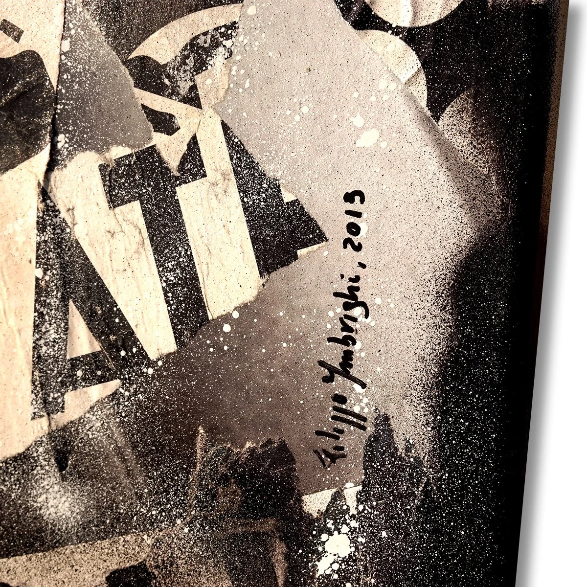 This is a piece from the original “Elizabeth Taylor” collection. Made with streetposters collected in the streets of Rome and during my travels around the world. A mix of colors and shades with a final glossy to protect all elements.