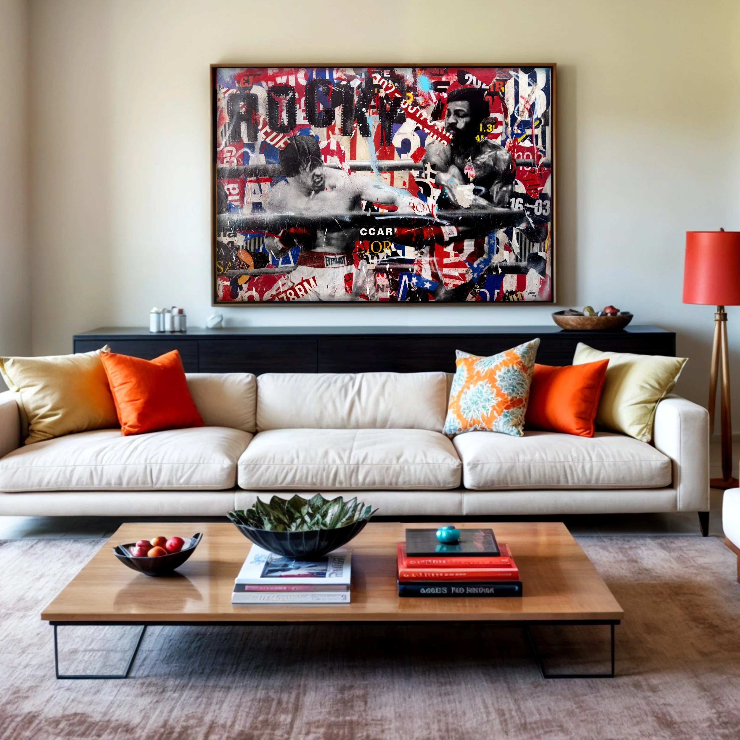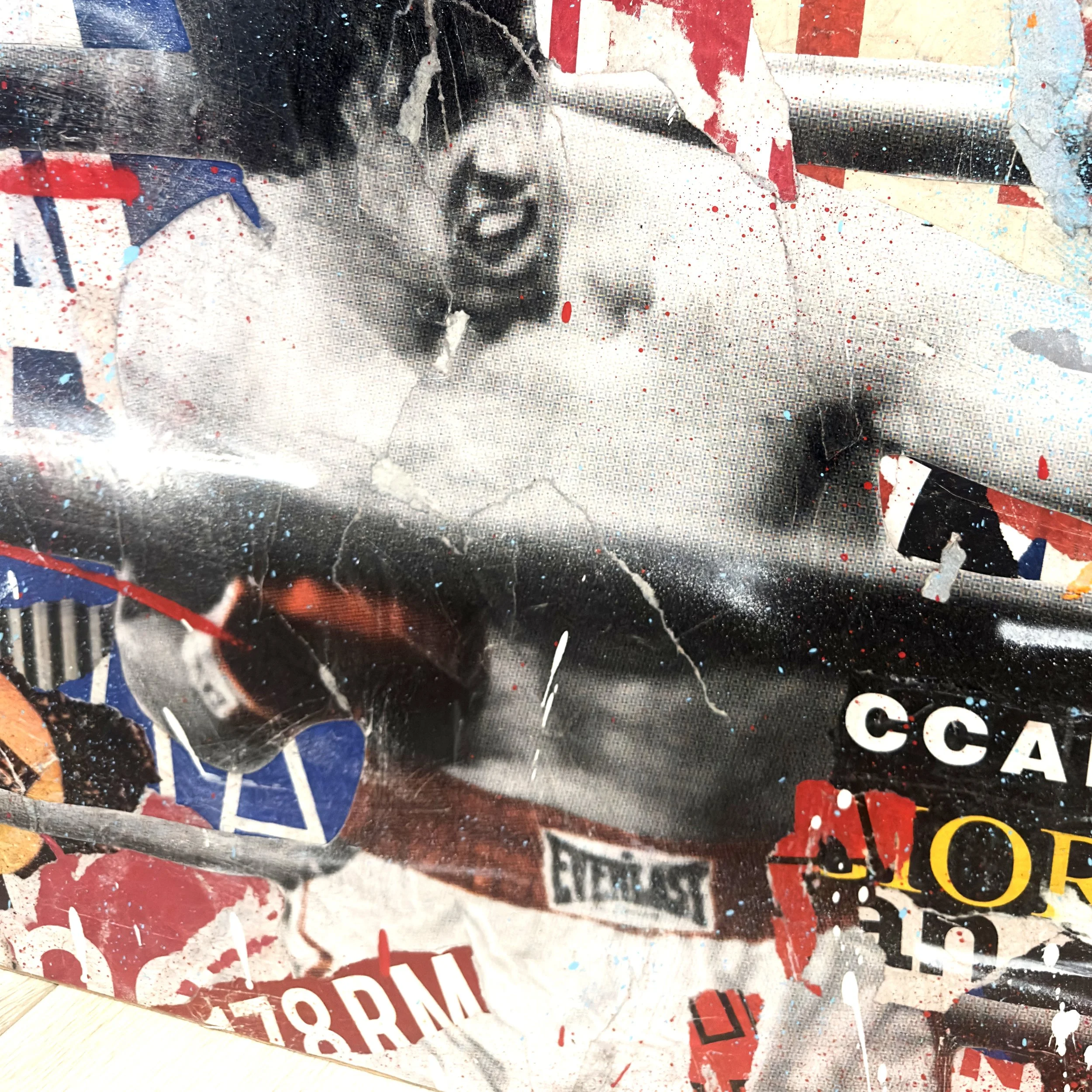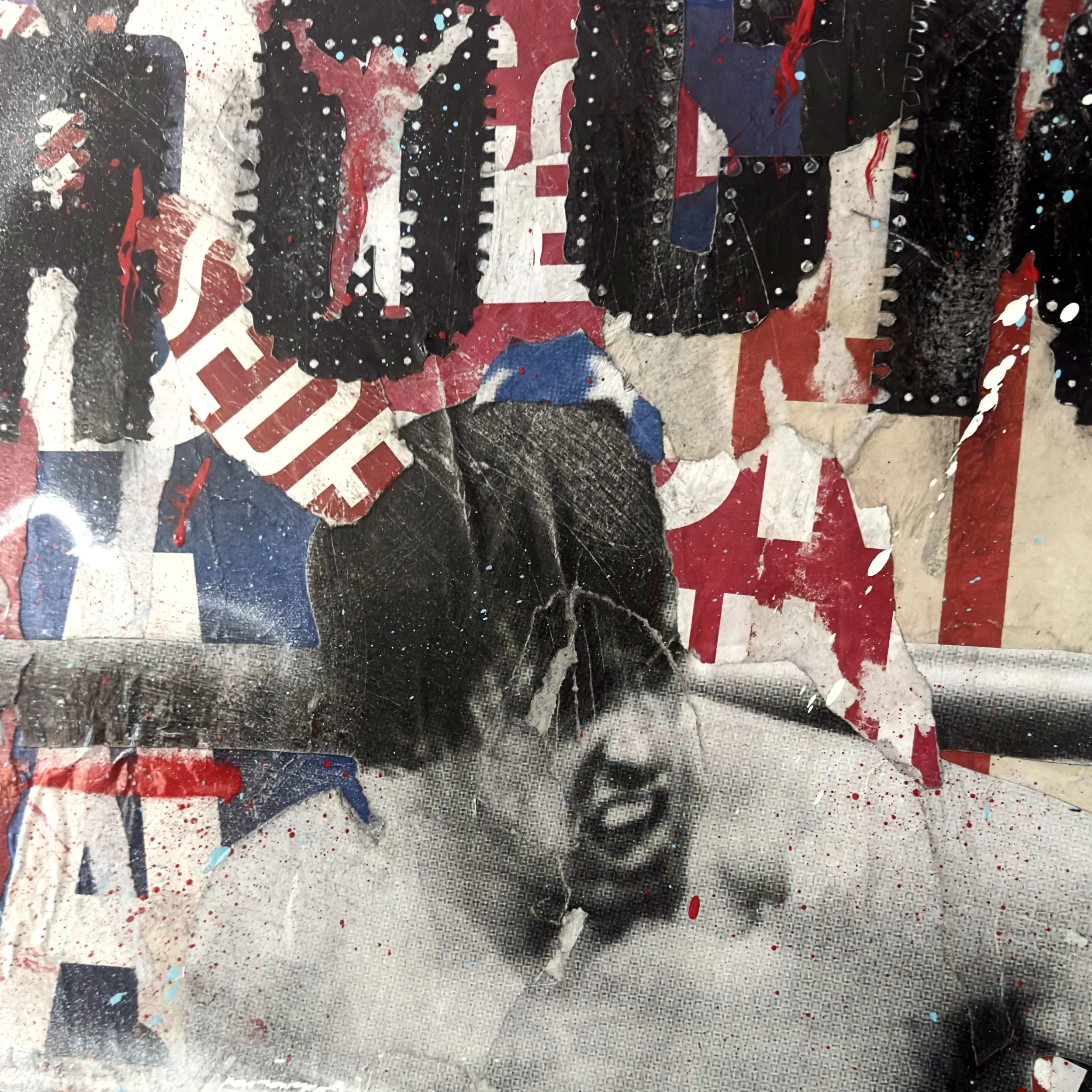 This is a piece from the original “Rocky” collection. Made with streetposters collected in the streets of Rome and during my travels around the world. A mix of colors and shades with a final glossy to protect all elements.